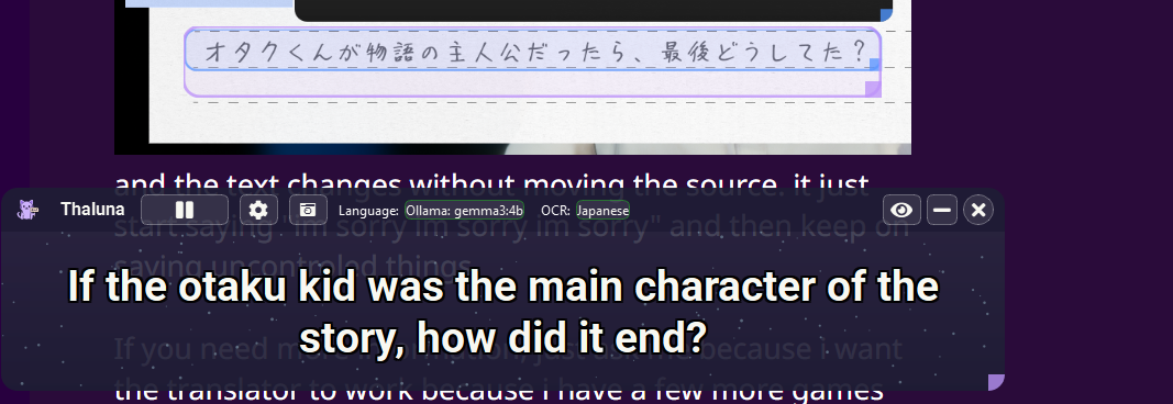 Whether you're a gamer, anime fan, or manga reader, Thaluna is your ultimate real-time OCR and translation tool for seamless, offline text translation from any media!