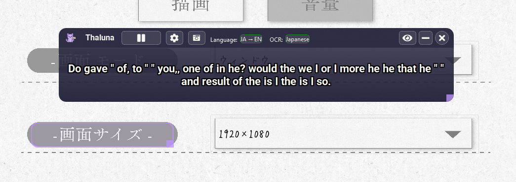 I haven't touched any default settings and tried to do the things that you told me (changing the OCR language and then back again to japanese) and also tried on some easier text ingame (the settings, the imaged attached should say "screen size" or something like that) but still somehow messes up...