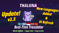 - October 18, 2025 by Thaluna.Dev#gi ai-translator, #anime-translator, #game-translator, #language-learning, #Manga, #ocr, #offline-translator, #real-time-translator, #translation-toolπ§© Thaluna v2.2 β The Customization Update Hey everyone! This update is all about personalization , usability , and reliability . Thaluna now lets you adjust the entire interface to your style β... Continue reading